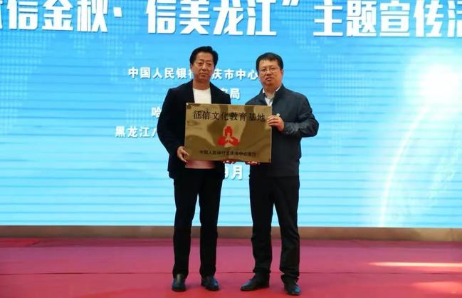 为进一步加强公司员工思想政治教育,强化员工诚信意识,培养诚信品质,增强防范诈骗意识,9月18日,公司联合中国人民银行大庆市中心支行、大庆市公安局、哈尔滨银行大庆分行在体育馆举办征信文化教育基地授牌仪式暨“赋信金秋、信美龙江”主题宣传活动。公司党委书记单忠纪、经理徐素波、副经理韩光鹤,中国人民银行大庆市中心支行工会主任孙东海、中国人民银行大庆市中心支行征信管理科科长王晓峰、大庆市公安局网警分局安全管理大队大队长黄春秀、哈尔滨银行大庆分行合规风控部总经理彭勇出席活动,活动由公司党委副书记刘佳丽主持。