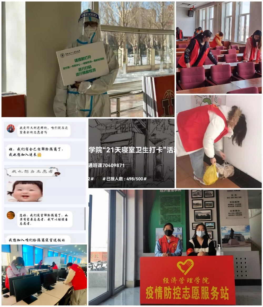 以劳润心,铸就青春靓丽底色。以志愿服务为主要抓手,深入贯彻习近平总书记有关劳动教育的重要论述。组织开展“隔离病情,不隔离爱”学雷锋志愿活动,“弘扬雷锋精神,凝聚青春力量”学雷锋志愿服务,“大手拉小手,青春伴童心”募捐活动、校园疫情防控志愿服务站志愿服务等志愿服务活动,500余人次老员工志愿者主动承担起疫情防控宣传、文明行为督导以及为隔离寝室送餐等工作,让校园里的红马甲成为了一道最美的风景线;开展21天寝室卫生打卡活动、“文明寝室,你我行”寝室扫除消杀活动、“劳动育人 抗疫同行”爱国卫生运动等活动,加强卫生养成教育、掌握卫生消杀常识,切断寝室疾病的传播途径,营造安全、整洁、卫生、和谐的寝室环境,进一步巩固疫情防控成果。