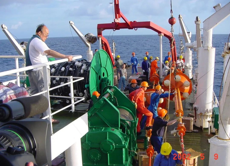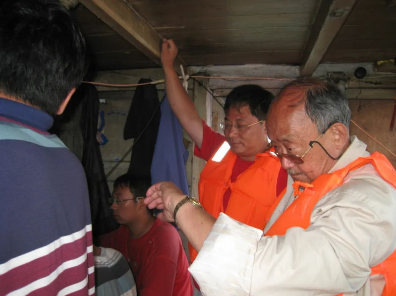 考察筹备期间,杨士莪作为技术组长,频繁奔波于北京、广州、湛江等地考察调研,亲自起草编写了《南海重点海域水声综合考察论证报告》《实验大纲》《实施计划》等重要文件。从琼州海峡到南沙群岛,考察队的航迹深入南中国海。深海区域作业时,赤道附近的太阳几乎垂直挂在头上,甲板高温近70℃。水声科学家们冒着高温,抱着一百多斤的线轴在电缆里钻来钻去,一干就是十几个小时。杨士莪身先士卒,和大家一起忍受着高温酷热、缺少淡水、没有蔬菜的艰难时刻。在长时间海上试验、淡水告罄的情况下,他与队员们把压载水仓飘着油污的水烧开了喝。