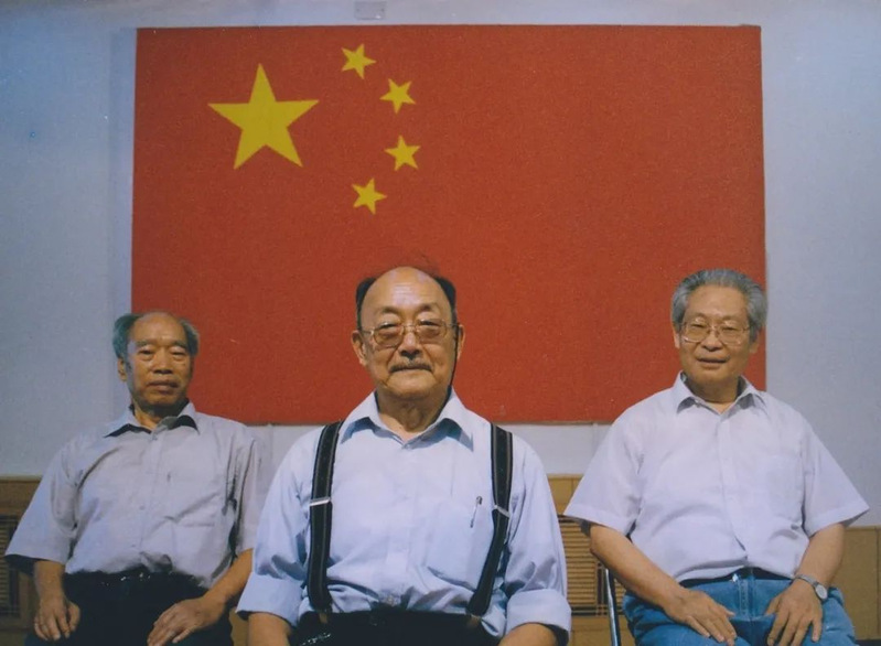 2007年,杨士莪(中)等中国工程院院士在酒泉卫星发射基地留影