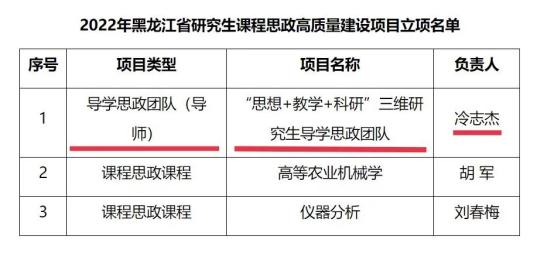 近日,黑龙江省教育厅公布了2022年黑龙江省研究生课程思政高质量建设项目评审结果,我院冷志杰教授负责的“思想+教学+科研”三维研究生导学思政团队获批立项导学思政团队项目。