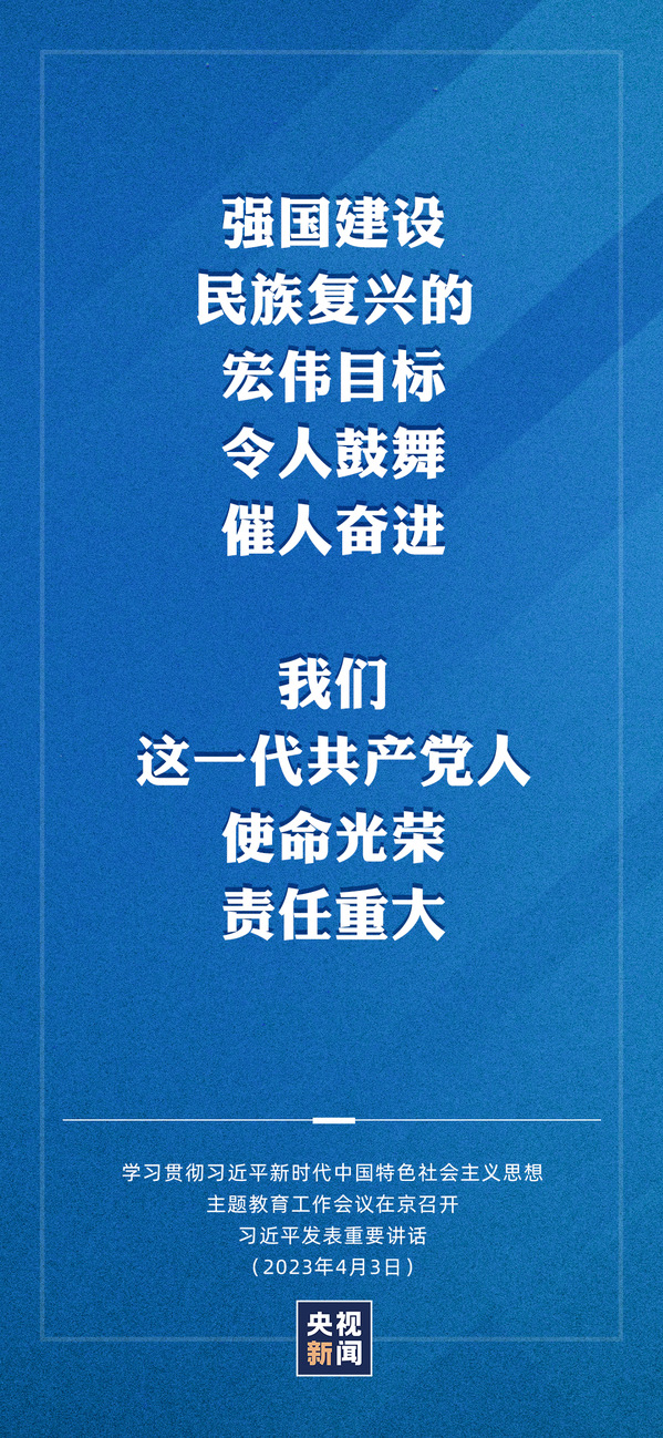我们要以这次主题教育为契机,加强党的创新理论武装,不断提高全党马克思主义水平,不断提高党的执政能力和领导水平,为奋进新征程凝心聚力,踔厉奋发、勇毅前行,为全面建设社会主义现代化国家、全面推进中华民族伟大复兴而团结奋斗。