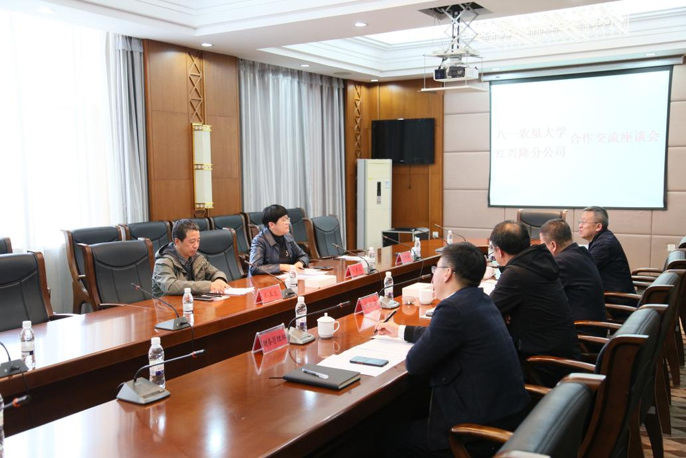 在红兴隆管局,公司一行人员与分公司总经理蔡建华、副总经理魏庆安等公司高管人员进行了座谈交流。校企双方就科技研发合作、技术成果转化、员工实习实践、财务人员培训以及市场营销推广等方面的合作进行了深入交流,并初步达成了合作的框架协议。