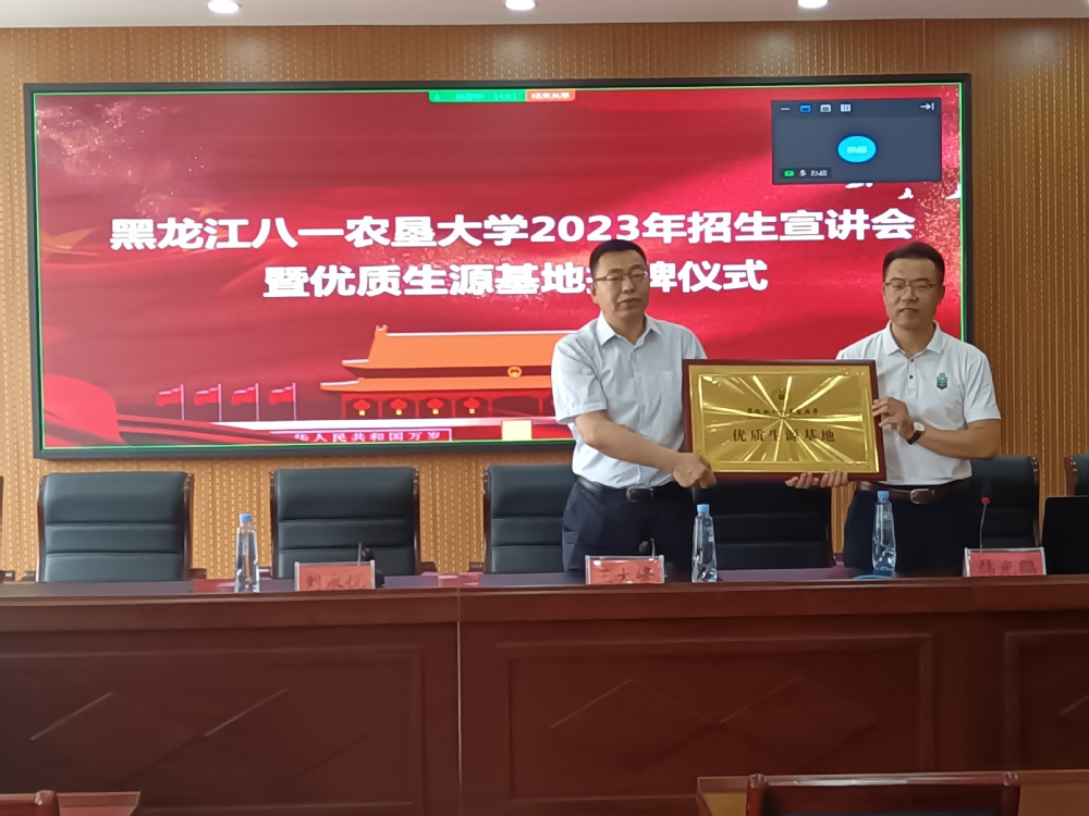 7月2日,副经理韩光鹤、物流管理系主任刘永悦赴绥化市区开展招生宣传。绥化市第九中学董事长王大峰参加会议,从韩光鹤手中接过授予的牌匾。韩光鹤围绕公司历史沿革、办学规模、学科专业特色、团队队伍、科学研究、国际交流、招生政策等内容进行了阐述,并以线上线下相结合的方式为现场和网络上的考生和家长进行了答疑。