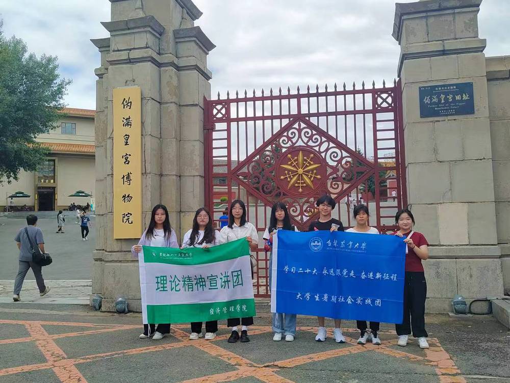 在2023年暑期“三下乡”社会实践活动中,“青春践于行,脚步遍吉林”实践团积极响应“跟着总书记脚步看吉林”号召,走进吉林省长春市、白山市、梅河口市开展“红色吉林”“大美吉林”主题社会实践活动。实践团队先后参观了长春市伪满皇宫博物院、长白山满族文化博物馆、梅河口市知北村、梅河口市科技馆等十二个场馆,围绕红色精神传承、生态文明建设、科技创新发展、民族文化弘扬四个方面开展研学活动,依托当地红色资源,重温革命历史,弘扬民族精神;依托当地生态资源,透视乡村振兴新图景,感受“绿水青山”间的旅游业发展崭新模式;依托当地文化资源,了解东北地区民俗文化,坚定文化自信,继承和弘扬优秀传统文化。
