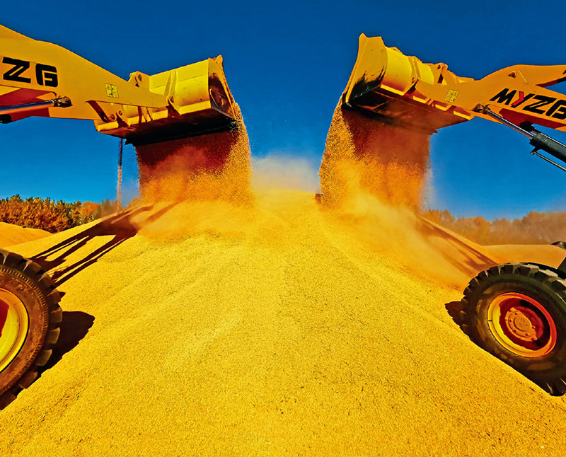 黑龙江坚持把多种粮、种好粮作为首要担当,今年粮食生产喜获“二十连丰”。图为北大荒集团二九○分公司收获作业现场。 黑龙江省委宣传部供图