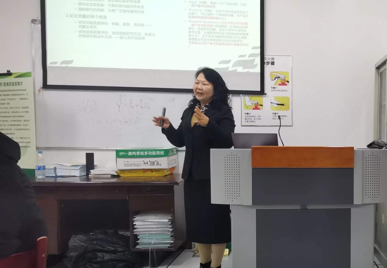 冷教授在讲座中强调了选题角度应该从原有的中国角度转变为全球角度,拥有更加广阔的全面视角,同时在选题方向上可以加强公司的特长,与农业相结合走出自己特色专业道路。在内容的处理上,应该在研究目的与意义、方法选取上都站在全面的大局观上进行思考。