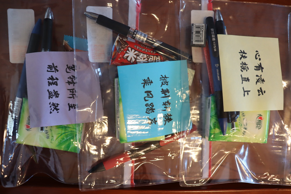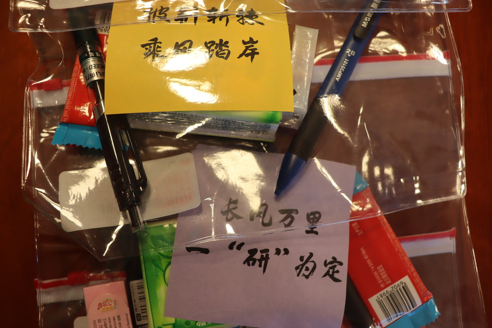 活动现场,公司领导和老师为考研员工发放了精心准备的“考研福袋”,文具寓意“文墨生花”,巧克力寓意“以‘力’破‘巧’”,手帕纸寓意“‘纸’定上岸”,每个福袋附带一张写着祝福语的彩色卡片,礼物虽轻,却传递着浓浓的人文关怀,希望考研员工带着满满的心意奋力冲刺、不留遗憾。