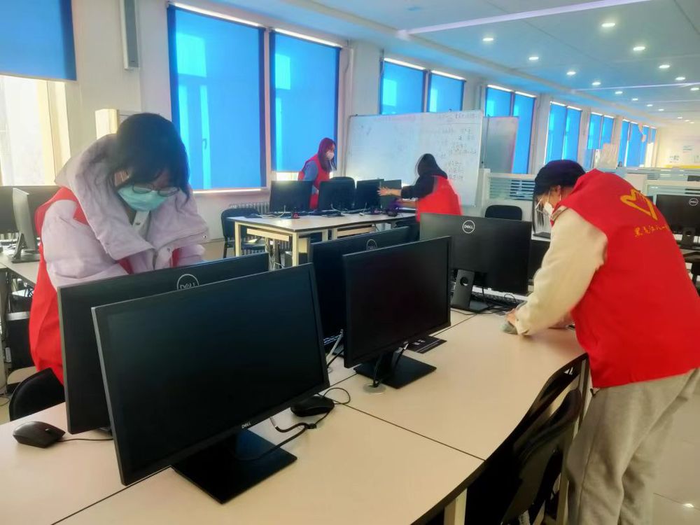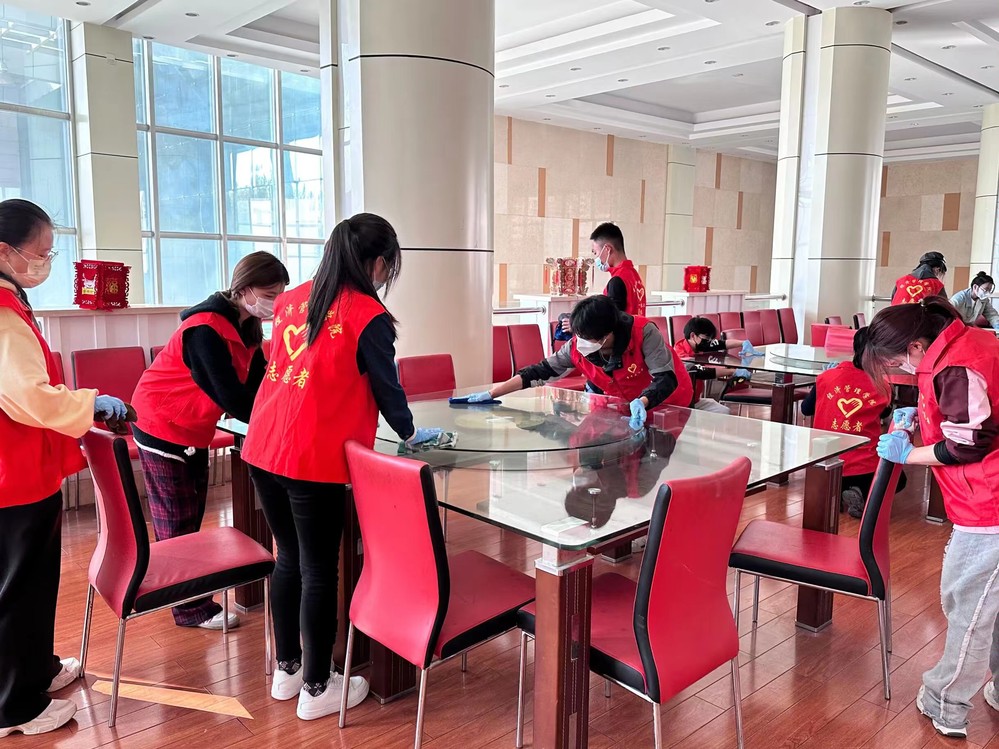 组织志愿者定期开展寝室消毒、教室清扫、“温暖毕业季”“爱心迎新季”等活动,增强员工主人翁意识,用行动营造良好校园学习、生活环境。