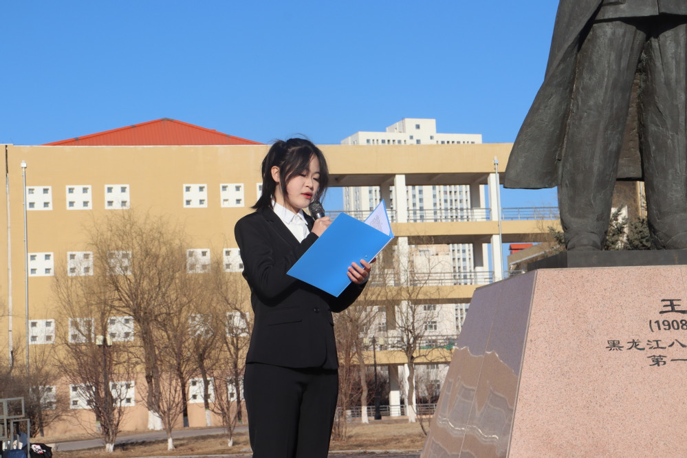 “致敬英烈,吾辈自强……艰苦奋斗,誓做栋梁”,退役老员工士兵杨添富带领同学们在王震将军像前庄严宣誓,一字一句掷地有声,同学们在铿锵誓言中提振使命担当,更加坚定做新时代北大荒精神传承人的信心和决心。