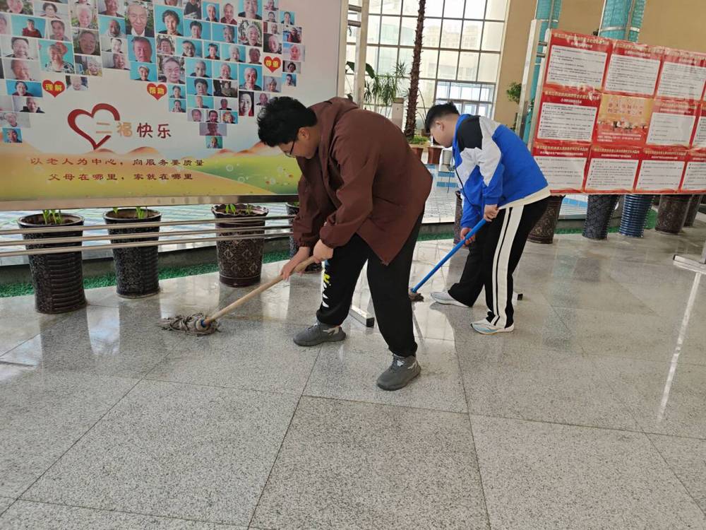 志愿者们与老人们促膝围坐,面对面地亲切交谈,以读书和讲书的形式为老人们助读,交流读书体会,畅谈美好生活,用实际行动让老人们感受到温暖和关怀。志愿者们协助工作人员打扫福利院各功能室卫生,让老人们有一个舒适的居住生活环境,营造出浓厚的爱老敬老氛围。