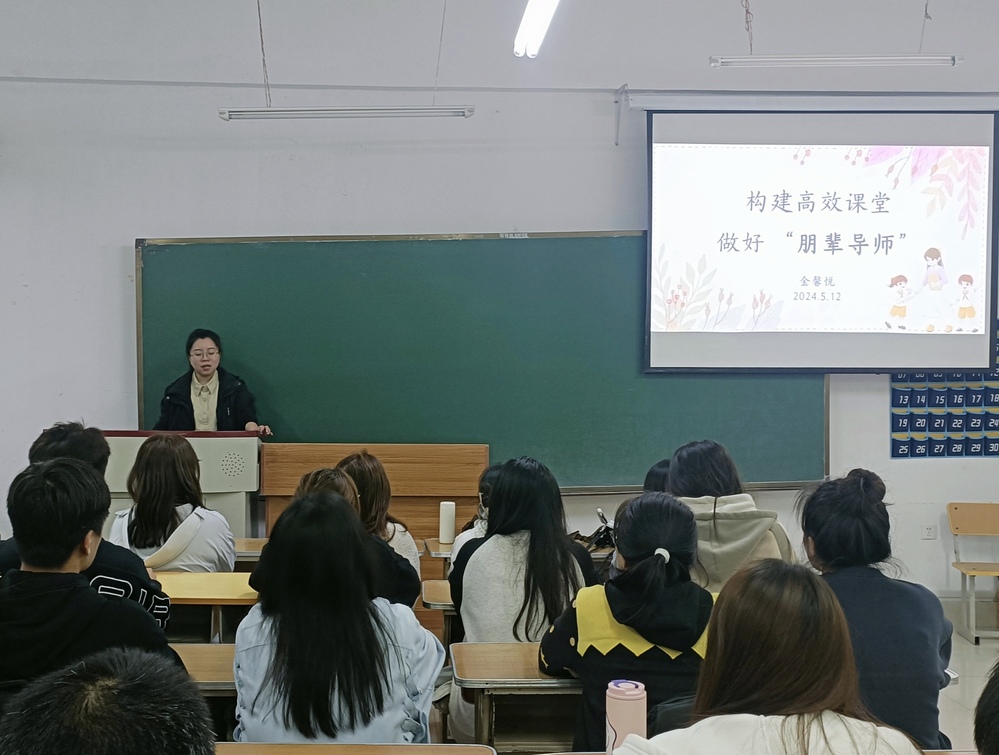 为提升学业互助中心讲师、助教的授课水平和学业帮扶成效,5月13日,u8国际平台开展朋辈学业讲师培训,辅导员金馨悦结合自身教育背景和教学经验,面向学业互助中心全体讲师、助教作以“构建高效课堂,做好‘朋辈导师’”为题的培训辅导。