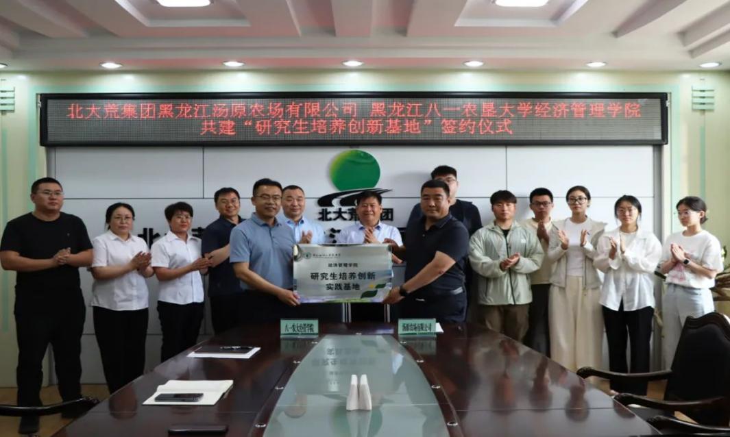 7月8日,u8国际平台经理徐素波一行赴北大荒集团建三江分公司八五九农场有限公司,与八五九农场有限公司党委书记、分公司总经理尹显洪共同为“黑龙江省产教融合研究生联合培养基地”揭牌。