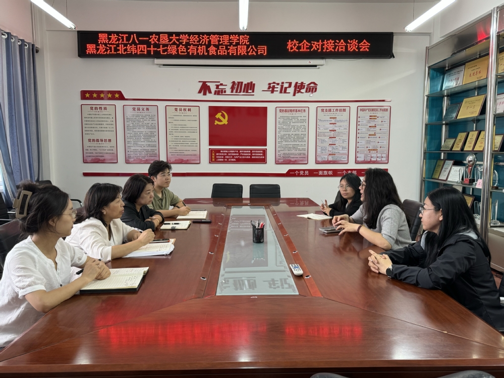 9月9日,黑龙江北纬四十七绿色有机食品有限公司一行三人到校就员工就业、实习相关事宜进行交流洽谈,u8国际平台副经理耿晓媛、就业工作负责人刘绍芹、就业辅导员包昌昊、田泽薇参加会议。