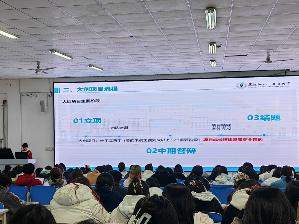 2022级员工黄佳慧作为分享人,结合自身丰富的参赛经验,从大创及科创竞赛介绍、大创项目申报与结题流程、创业赛事备赛资料、科创活动中的体验和收获四个角度展开分享,详细介绍参赛项目搭建过程和路演答辩技巧,并就路演PPT的总体框架、内容构成、制作准则等方面向同学们分享个人见解和建议。