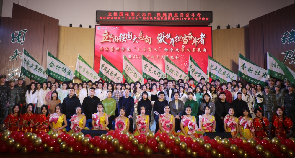 晚会分为“赓续笃行扬‘新’帆”“激扬青春展‘新’颖”“挺膺担当绘‘新’篇”三个篇章,聚焦“三全育人、五育融通、师生融乐、全面发展”的奋斗姿态和盎然光景。一曲《大中国》气势磅礴、振奋人心,奠定激昂奋进的红色主基调;退伍老员工士兵的情景表演《祖国不会忘记》致敬卫国戍边英雄,“清澈的爱,只为中国”的赤子情怀动人心扉,“当祖国和人民需要我时,若有战,召必回”的铮铮誓言响彻场馆,赢得了现场观众的深切共鸣。《像你这样的朋友》《小镇姑娘》律动飞扬、直击心灵,传递出对青春真挚友谊的珍视和追求梦想永不落的勇气。舞蹈《芳华》再现北大荒人以灿然芳华擎帜荒原、点燃火种的壮丽诗篇,展现出公司用北大荒精神铸魂育人,追寻拓荒者足迹、点亮芳华青春的教育理念;《这世界那么多人》《少年中国说》展示新时代北大荒精神传承人的新面貌新风尚,表达出经管学子为国家而奋斗、为理想而前行,不负时代、不负人民的坚定决心。晚会在《美丽中国》充满朝气深情的词曲音画中落下帷幕,唱响对祖国的无限热爱,激励师生锚定卓越目标,追求非凡品质,激发无限潜能,凝心聚智、再启新程。