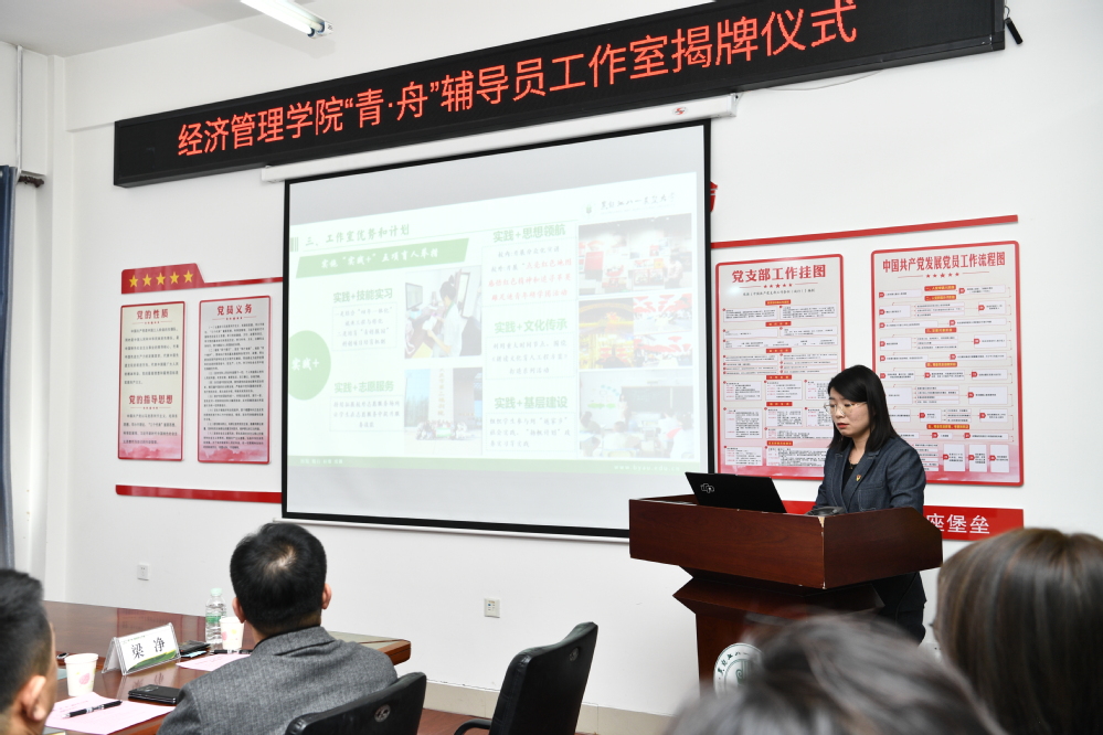 工作室主持人梁净从成立背景、建设理念及目标、优势及计划、预期成果四个方面对工作室基本情况作详细汇报。工作室聚焦实践育人,取名“青·舟”寓意“青衿之志,履践致远,一叶小舟,破浪前行”,致力于赋能辅导员职业成长、促进员工实践能力提升,构建“12345”实践育人模式,即锚定一个目标、搭建两个平台、坚持三阶段导向、汇聚四方力量,实施“实践+”五项举措,最终实现实践育人制度化、特色化和实效化的工作目标。