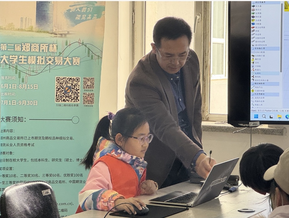 在VBSE实验室,公司教师刘宏宇以互动提问的方式让小朋友们了解到科技赋能物流运输的快速和高效,耐心指导小朋友们使用Flexsim软件,从认识各功能模块到搭建简单模型,引导他们自主完成货物入库搬运、上架储存等任务。刘宏宇由浅入深、层层递进,带领小朋友们探索物流领域的奥秘,使小朋友们加深了对公司特色专业的认知和了解,在他们心中埋下一颗颗创新的种子。