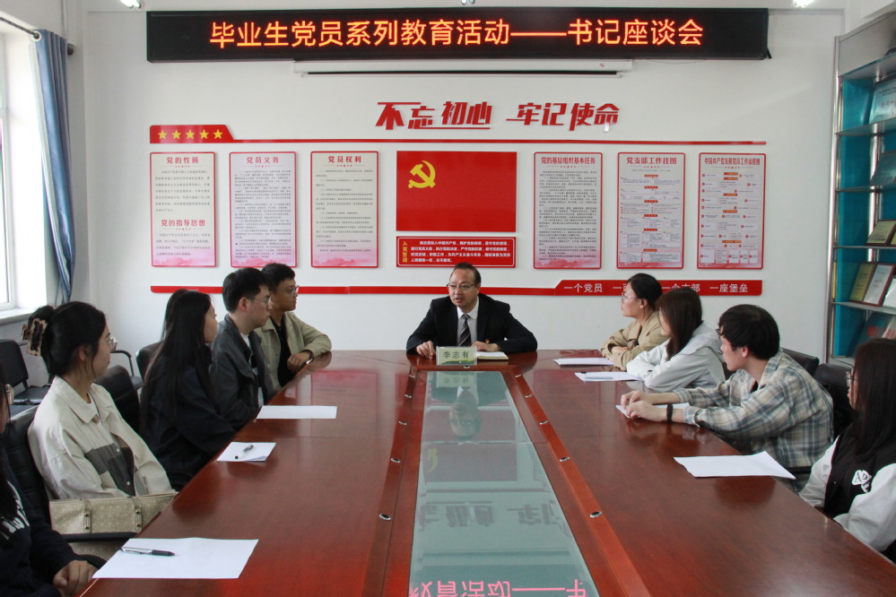 党支部书记与毕业生党员重温入党谈话环节,进行离校前的最后叮嘱,要求毕业生党员时刻以党员标准严格要求自己,在未来的学习、工作和生活中,坚定理想信念,展现青春担当,用实际行动践行对党的庄严承诺。