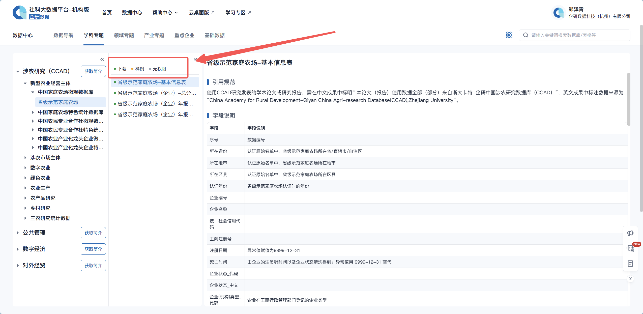 (4)详细使用教程请阅读:【企研数据】企研·社科大数据平台(机构版)使用说明书 https://qiyandata.feishu.cn/wiki/XRsowd0ldi8UgRkTGVwcu2XDnwg?from=from_copylink