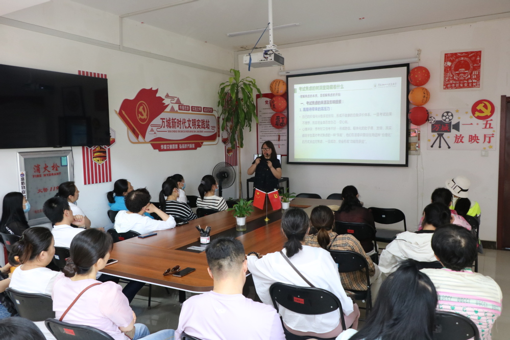 为帮助高考员工家长减轻心理压力,科学应对考前各种紧张情绪,5月29日下午,“青·舟”辅导员工作室联合“沐光”心理工作室面向万城社区居民开展“减压赋能 静待花开”专题心理健康讲座,由国家二级心理咨询师、信息与电气工程公司副处级辅导员、“沐光”心理工作室负责人王晓琦担任主讲。
