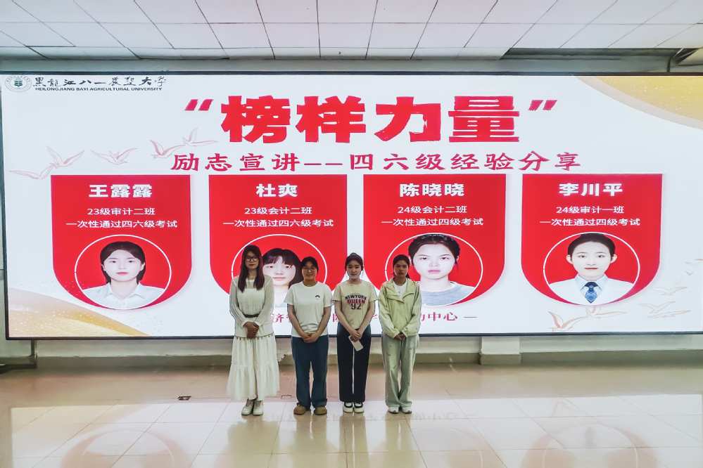 四位同学的经验分享各有侧重。王露露从宏观备考规划切入,表示听力练习需坚持“精听+真题复盘”,并分享了阅读题干关键词定位技巧等做题方法;针对听力部分薄弱的同学,杜爽提出“精听泛听结合计划”,前期每周“3天精听+2天泛听”,后期转向真题训练;陈晓晓聚焦日常积累和考场细节,说明了记背单词的重要性及方法,提醒同学们在考试过程中“边听边涂卡”,避免收卷时慌乱;李川平推荐利用词根词缀和真题语境记忆单词的方法,此外还分享了有关听力、阅读、翻译等方面的做题技巧。
