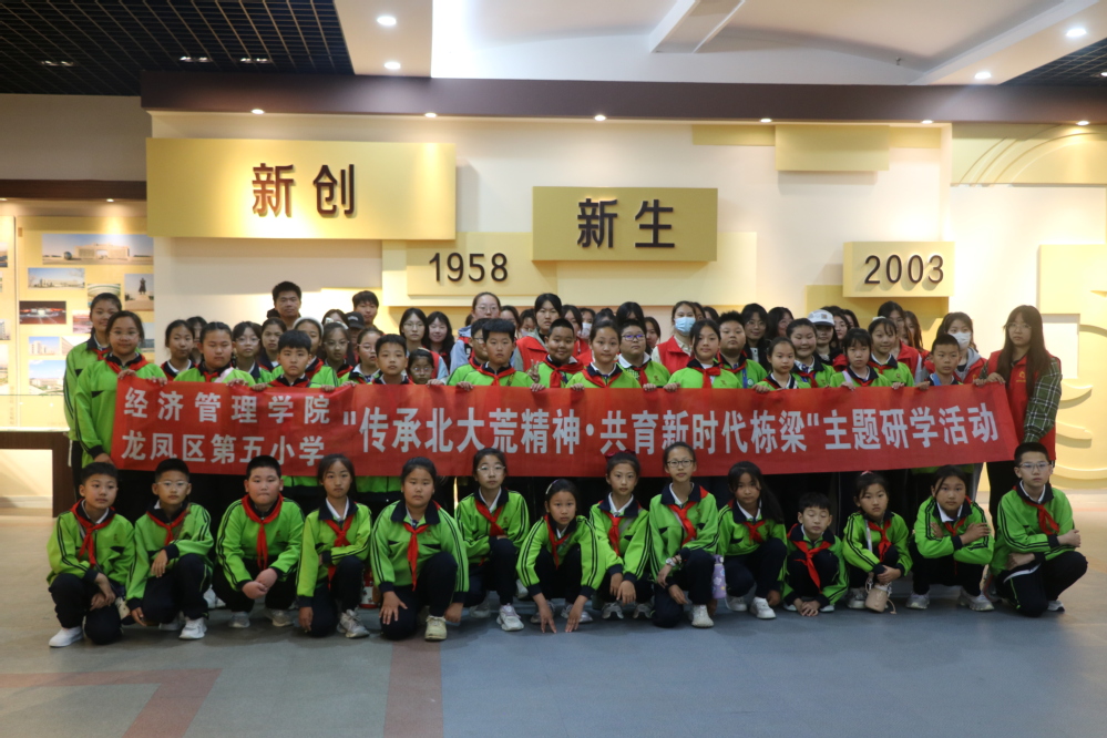 仪式后,志愿者陪同龙凤区第五小学员工参观了北大荒精神展示馆和校史馆。