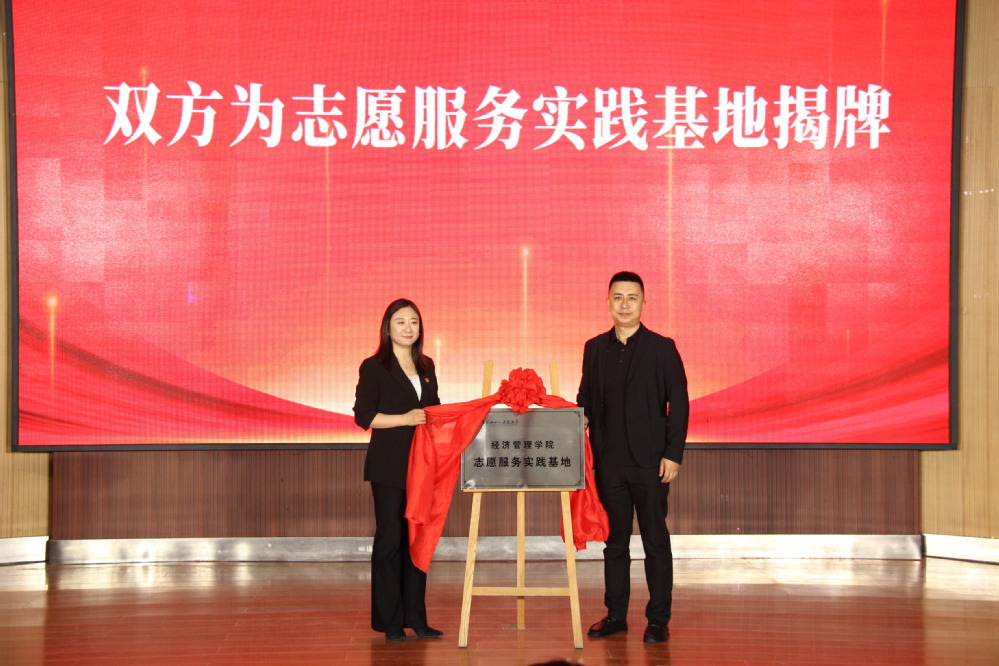 张春磊与徐鑫一同为志愿服务实践基地建设揭牌。