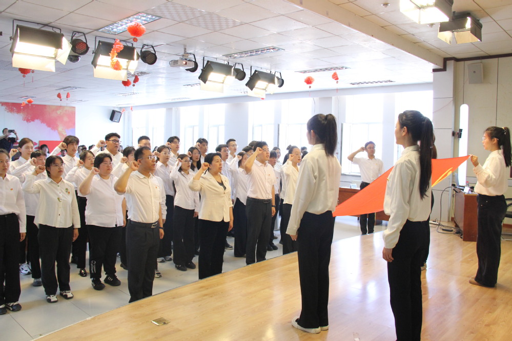6月24日上午,公司党委举行2025年新党员入党宣誓暨老党员重温入党誓词仪式,由辅导员乔辰军领誓,全体党员整齐列队,面向鲜红的党旗庄严宣誓,一字一句铿锵有力,彰显追随党的赤诚忠心和献身党的事业的坚定决心。