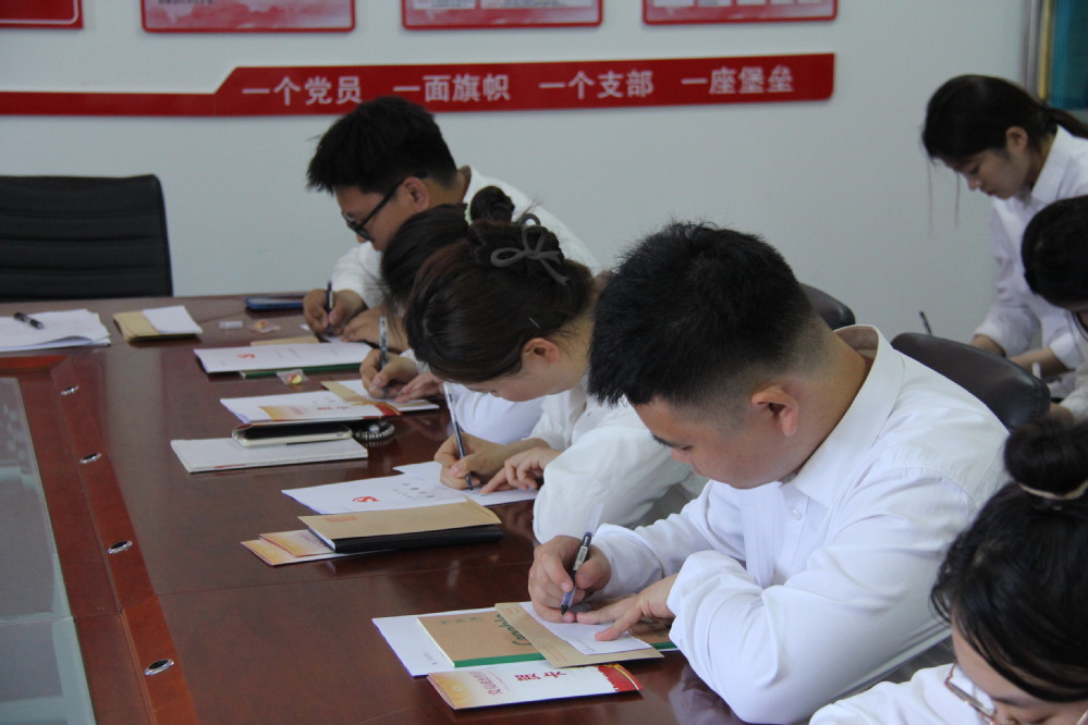 6月24日,公司党委为6月、7月入党的党员举办集体政治生日会,为党员送上精心设计的贺卡,贺卡内页印制入党誓词与成长寄语,让党员充分感受到组织的关怀和温暖。党员代表重温入党志愿书,结合强农使命畅谈初心感悟。活动特别设置“时光信箱·致未来的我”环节,预备党员撰写《致转正时的一封信》,郑重封存个人成长目标与承诺,待转正之日开启自省,以书信为媒构建自我监督机制。
