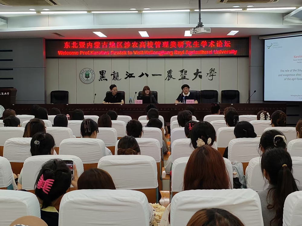 此次讲座,她带来了题为“The Role of the Single European Market and Exogenous Shocks in the Development of Agri-food Trade in Poland”的前沿内容。报告会上,卡罗琳娜·帕拉克教授通过详实的数据、生动的案例,深入浅出地剖析了波兰农业食品贸易在复杂国际环境下的发展状况。她表示,单一欧洲市场的整合在促进贸易自由化的同时,也带来了新的挑战;而外生冲击,如政策变化、突发的全球性事件等,更是深刻影响着农业食品贸易的格局。在讲解过程中,教授还结合自己在柏林洪堡大学、加州大学戴维斯分校等多所国际知名高校的工作学习经历,分享了不同学术环境下对于国际农业贸易问题的研究视角,拓宽了参会师生的学术视野。